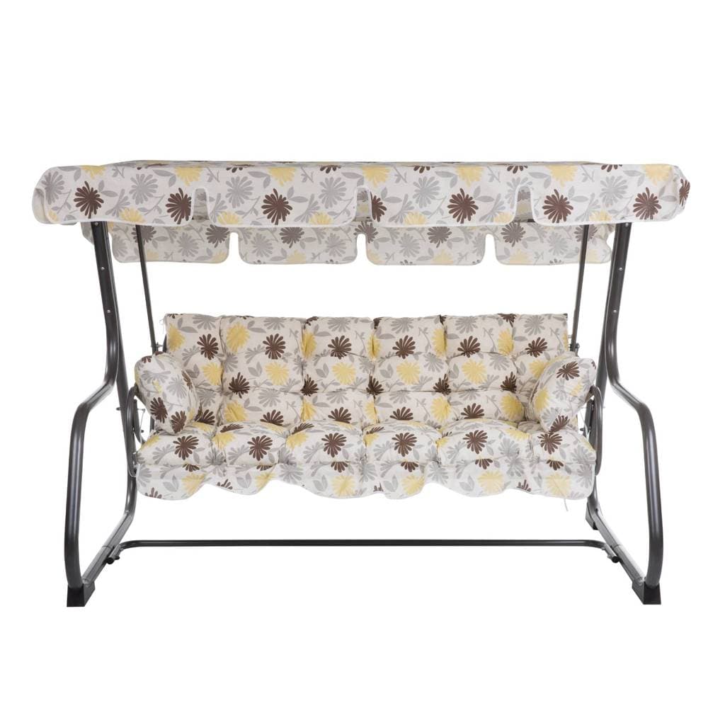 Сиденье установлено на пружинах — это позволяет качелям раскладываться в удобное спальное место. Размер сиденья: 170 см × 55 см. Высота спинки: 55 см. В комплекте подушки 175 см × 54 см, толщина 10 см, наполнитель — нарезанный поролон Flocke.