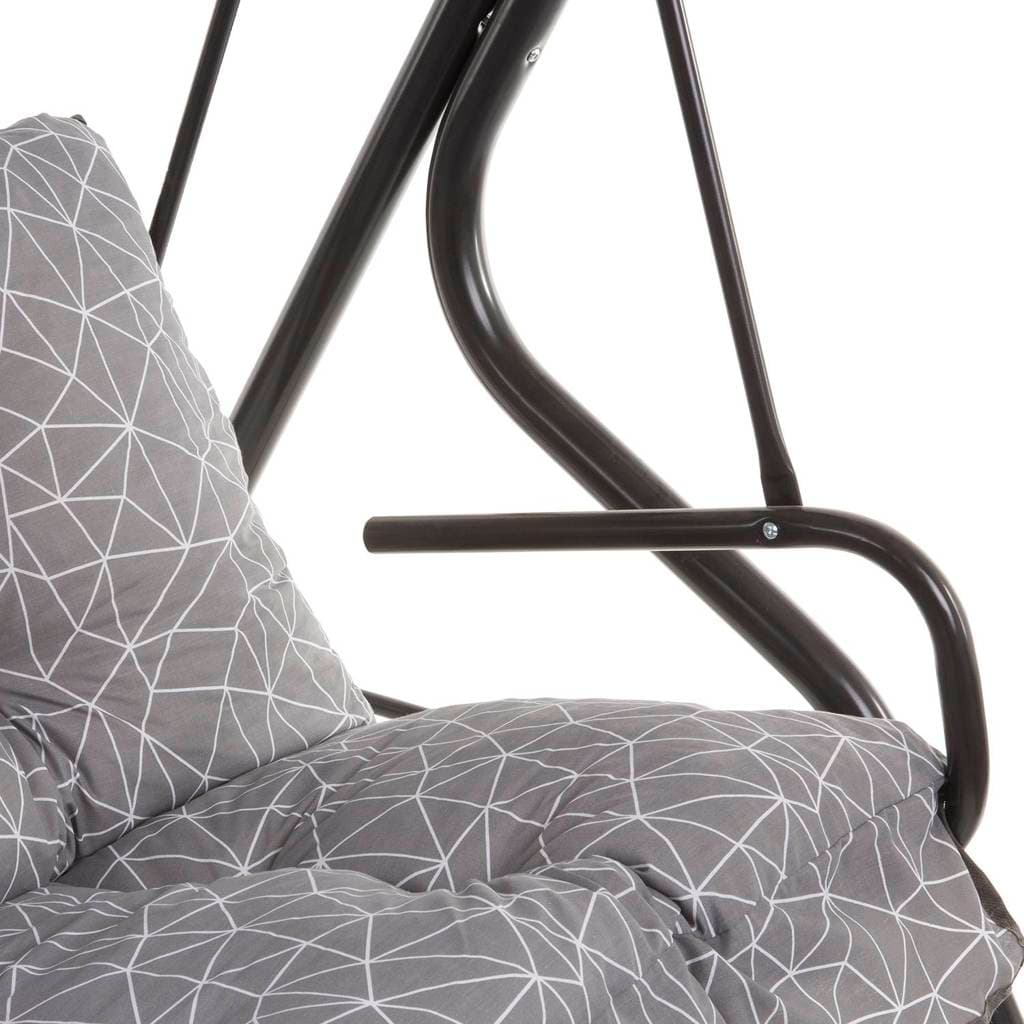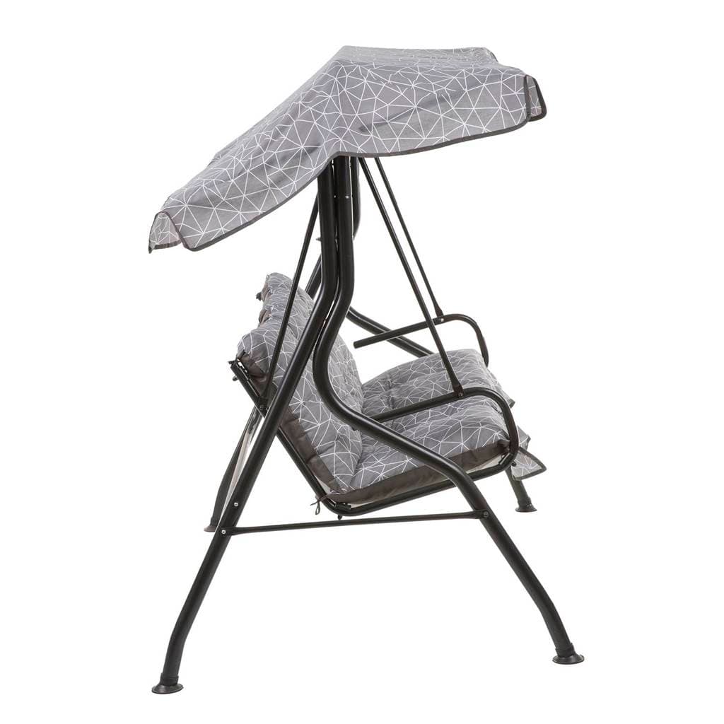 Стальная рама с порошковым покрытием устойчива к влаге, солнцу и перепадам температуры — качели подходят для круглогодичной эксплуатации на улице. Максимальная нагрузка — 210 кг. Габариты: 167 см × 110 см × 156 см. Вес изделия — 21 кг. Цвет каркаса: антрацит.