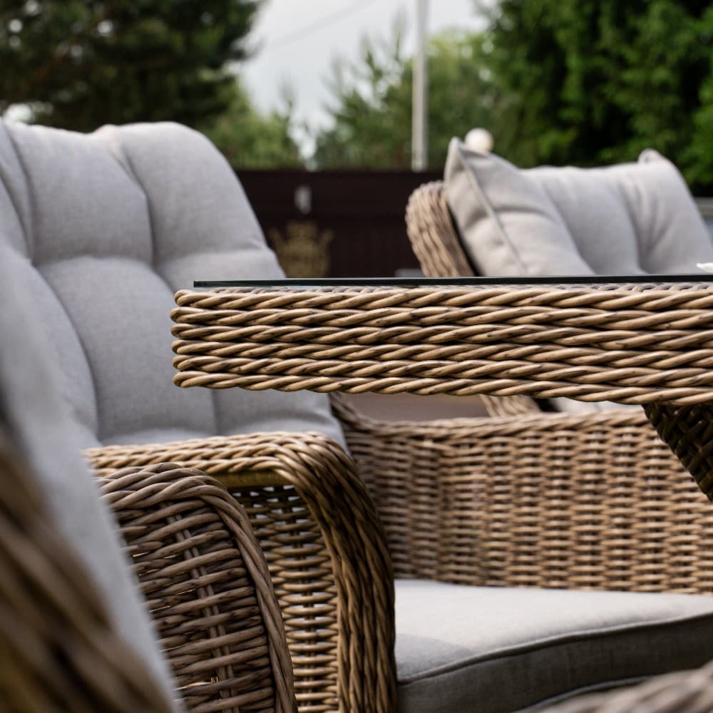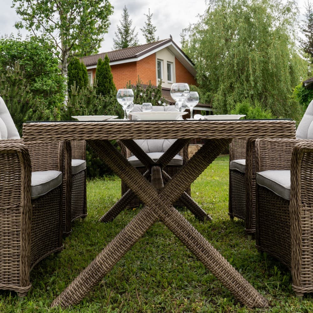 Материал комплекта — искусственный ротанг (ручного плетения)