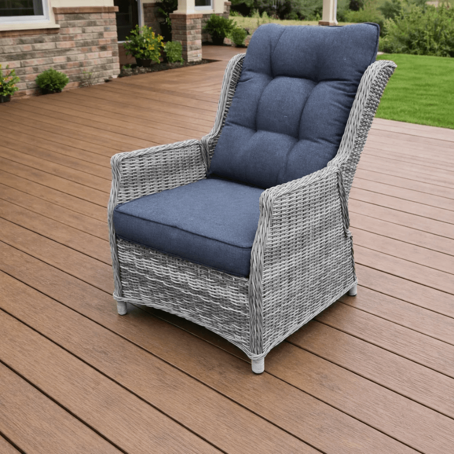 Плавный механизм позволяет менять наклон спинки с лёгкостью движения руки. Хотите сесть прямо за утренним кофе — пожалуйста. Решили вздремнуть в тени сада — откиньтесь назад. Кресло подстраивается под вас, а не вы под него.