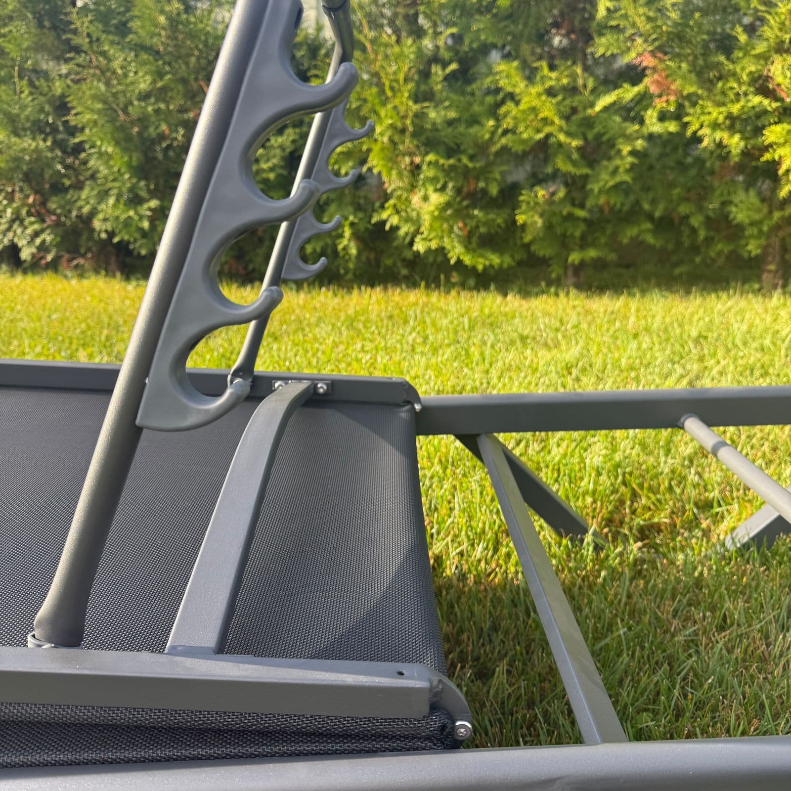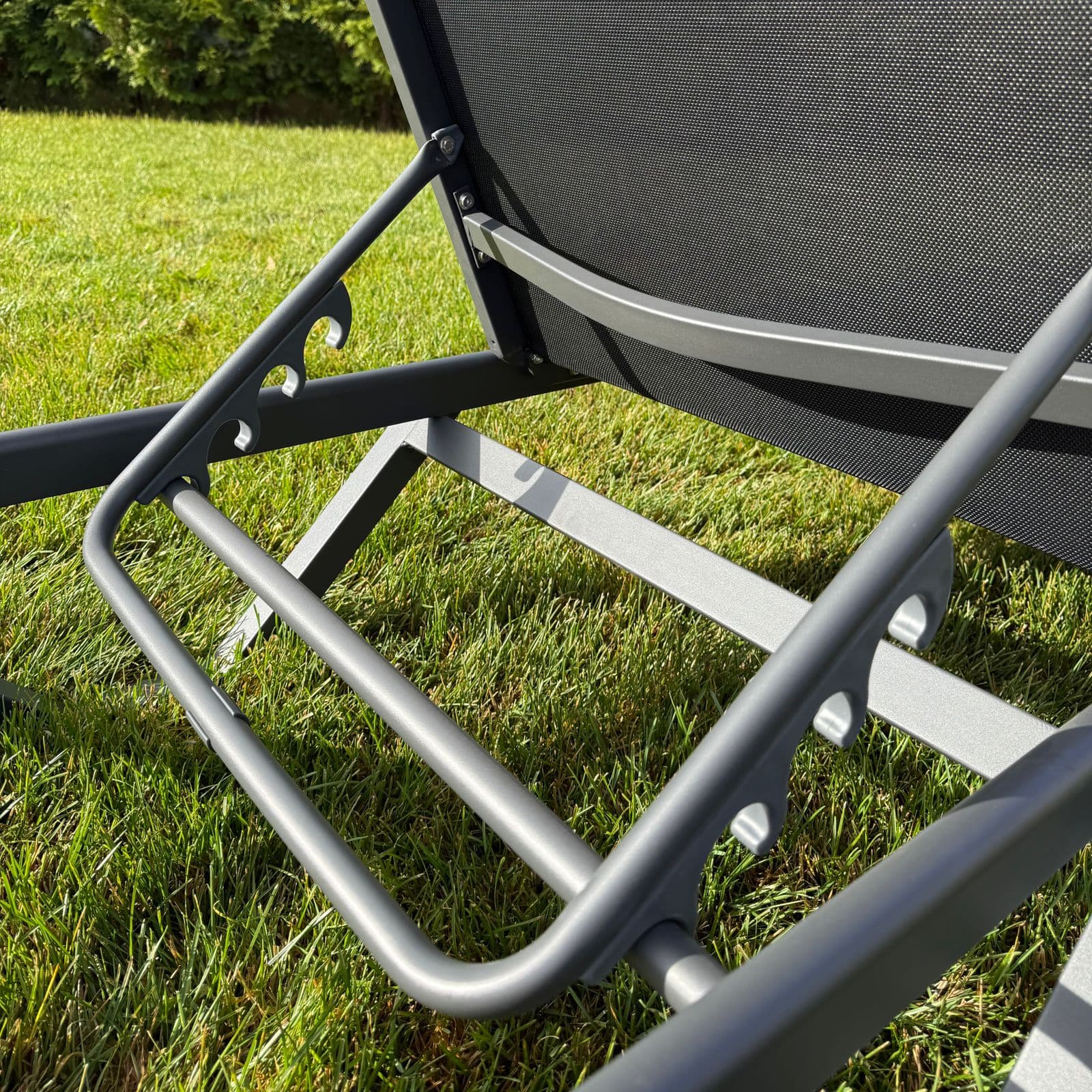 Каркас из высококачественного алюминия обеспечивает прочность и долговечность шезлонга, при этом оставаясь легким и устойчивым к погодным условиям. Материал сиденья — текстилен — отличается высокой износостойкостью, воздухопроницаемостью и простотой в уходе, благодаря чему вы сможете наслаждаться комфортом на протяжении многих сезонов.