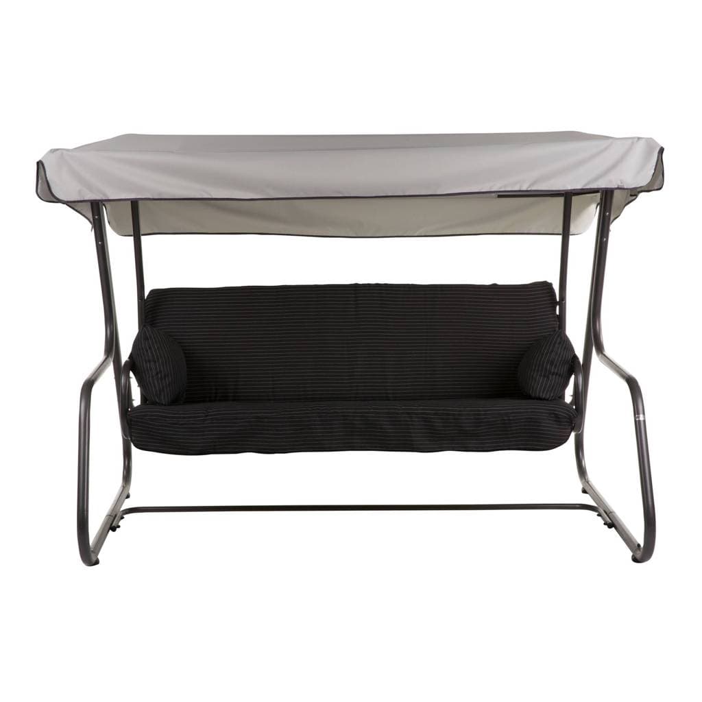 Стальная рама с порошковым покрытием устойчива к влаге, солнцу и перепадам температуры — качели подходят для круглогодичной эксплуатации на улице. Максимальная нагрузка — 300 кг. Габариты: 220 см × 134 см × 157 см. Вес изделия — 46 кг. Цвет каркаса: антрацит.