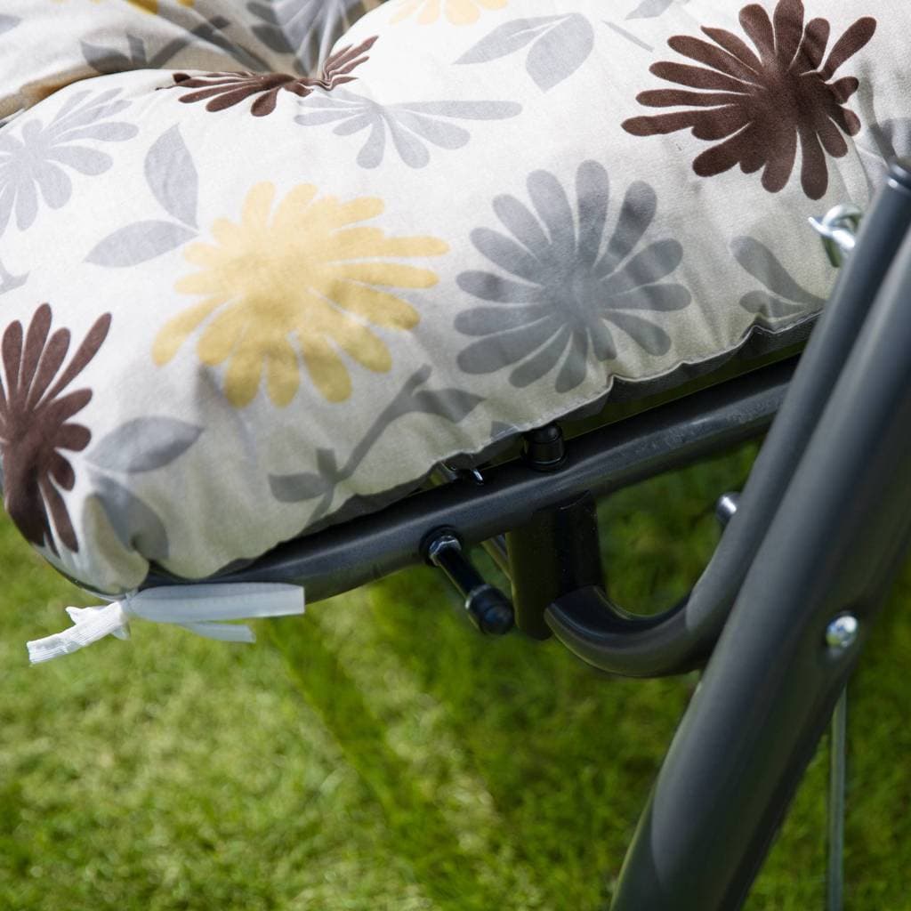 Сиденье установлено на пружинах — это позволяет качелям раскладываться в удобное спальное место. Размер сиденья: 170 см × 55 см. Высота спинки: 55 см. В комплекте подушки 175 см × 54 см, толщина 10 см, наполнитель — нарезанный поролон Flocke.