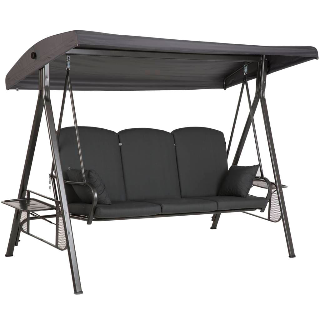 Стальная рама с порошковым покрытием устойчива к влаге, солнцу и перепадам температуры — качели подходят для круглогодичной эксплуатации на улице. Максимальная нагрузка — 300 кг. Габариты: 235 см × 125 см × 178 см. Вес изделия — 52 кг. Цвет каркаса: антрацит.