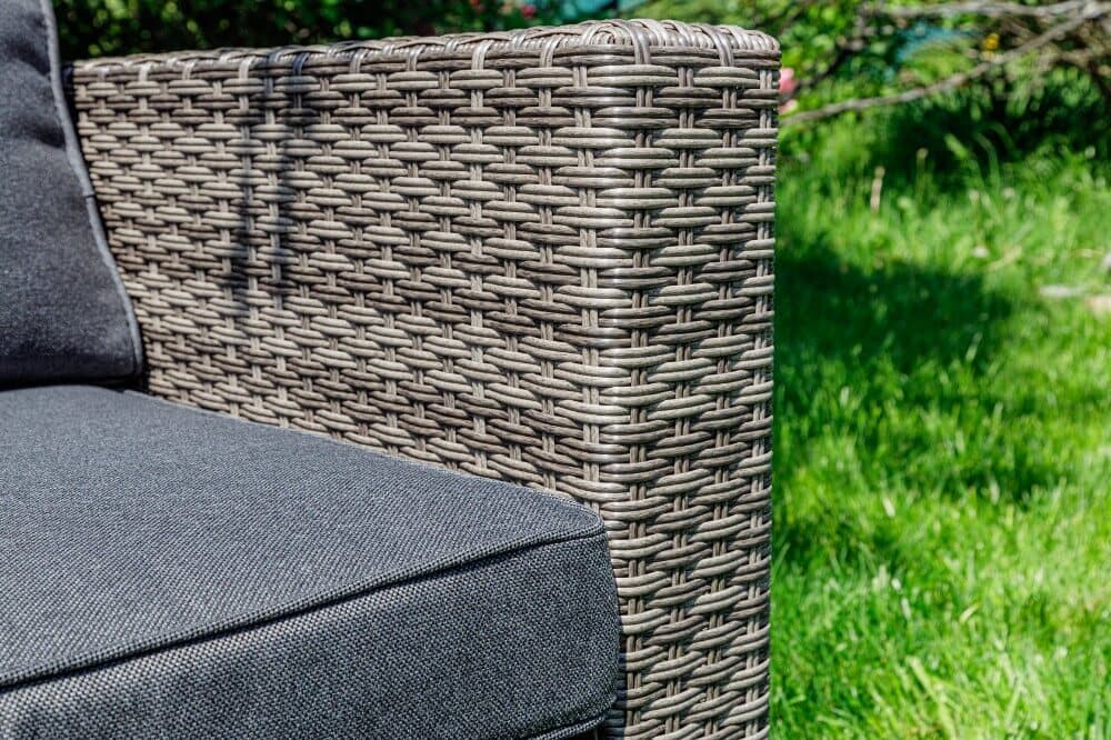 Комплект мебели Pion с обеденным столом в сером цвете — это элегантное и удобное решение для вашей столовой или гостиной. Он состоит из трехместного дивана, двух кресел и обеденного стола, изготовленных из искусственного ротанга на металлическом каркасе.
