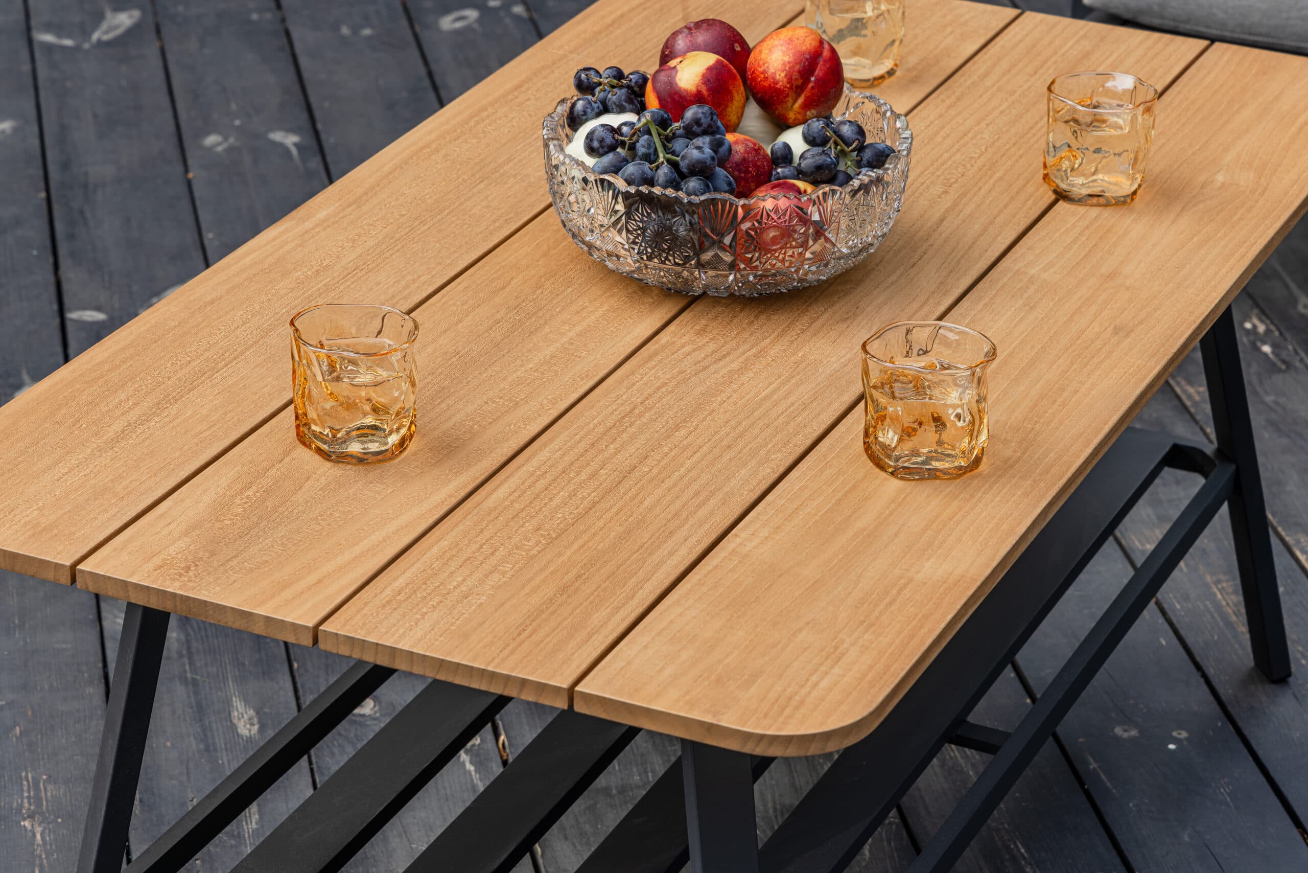 Алюминиевый каркас антрацитового цвета делает мебель легкой и прочной одновременно, что позволяет использовать ее как на открытом воздухе, так и в помещении. Мебель выдерживает любые погодные условия, не выцветает на солнце и не ржавеет под дождем.