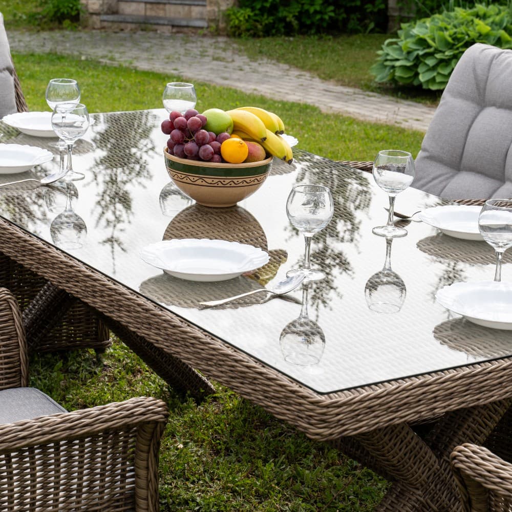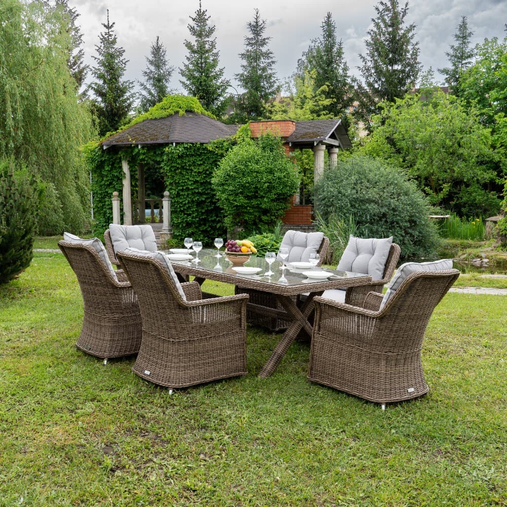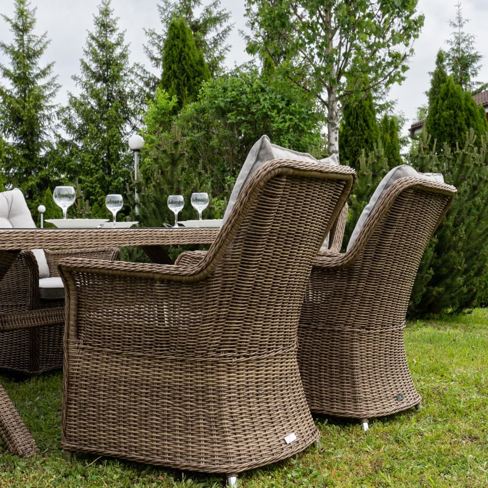 Материал комплекта — искусственный ротанг (ручного плетения)
