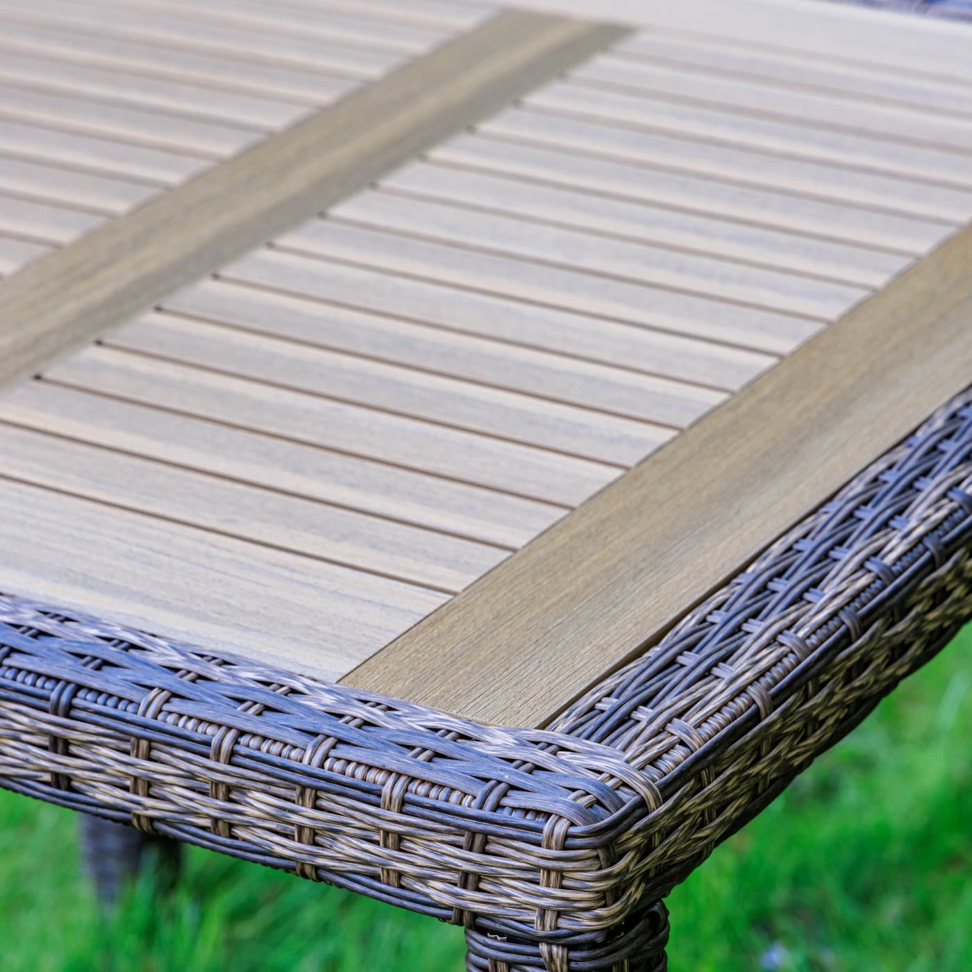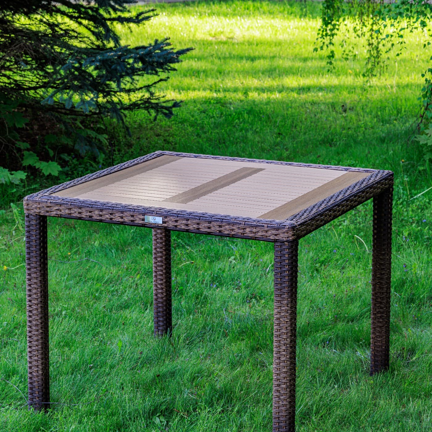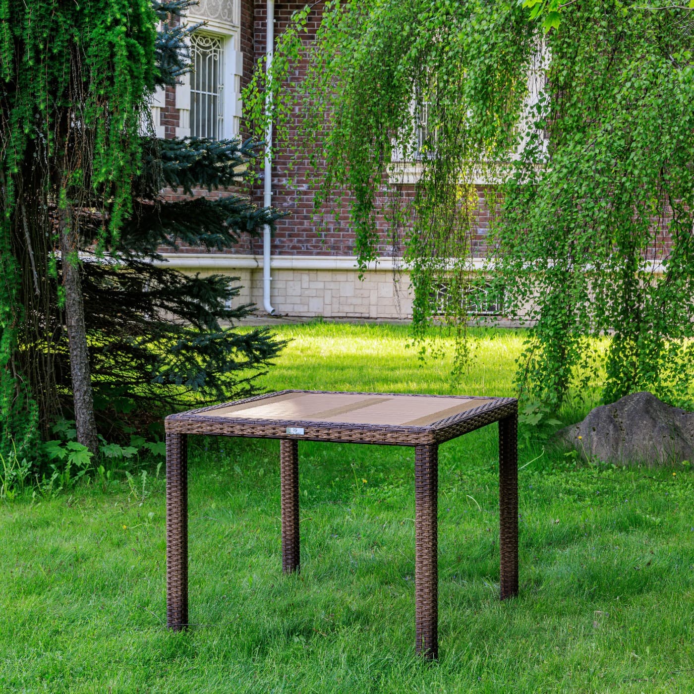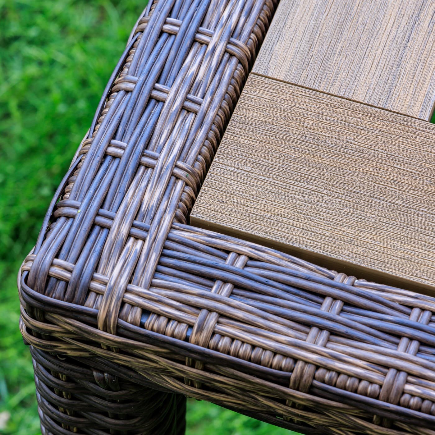 Материал стола — искусственный ротанг (ручного плетения)