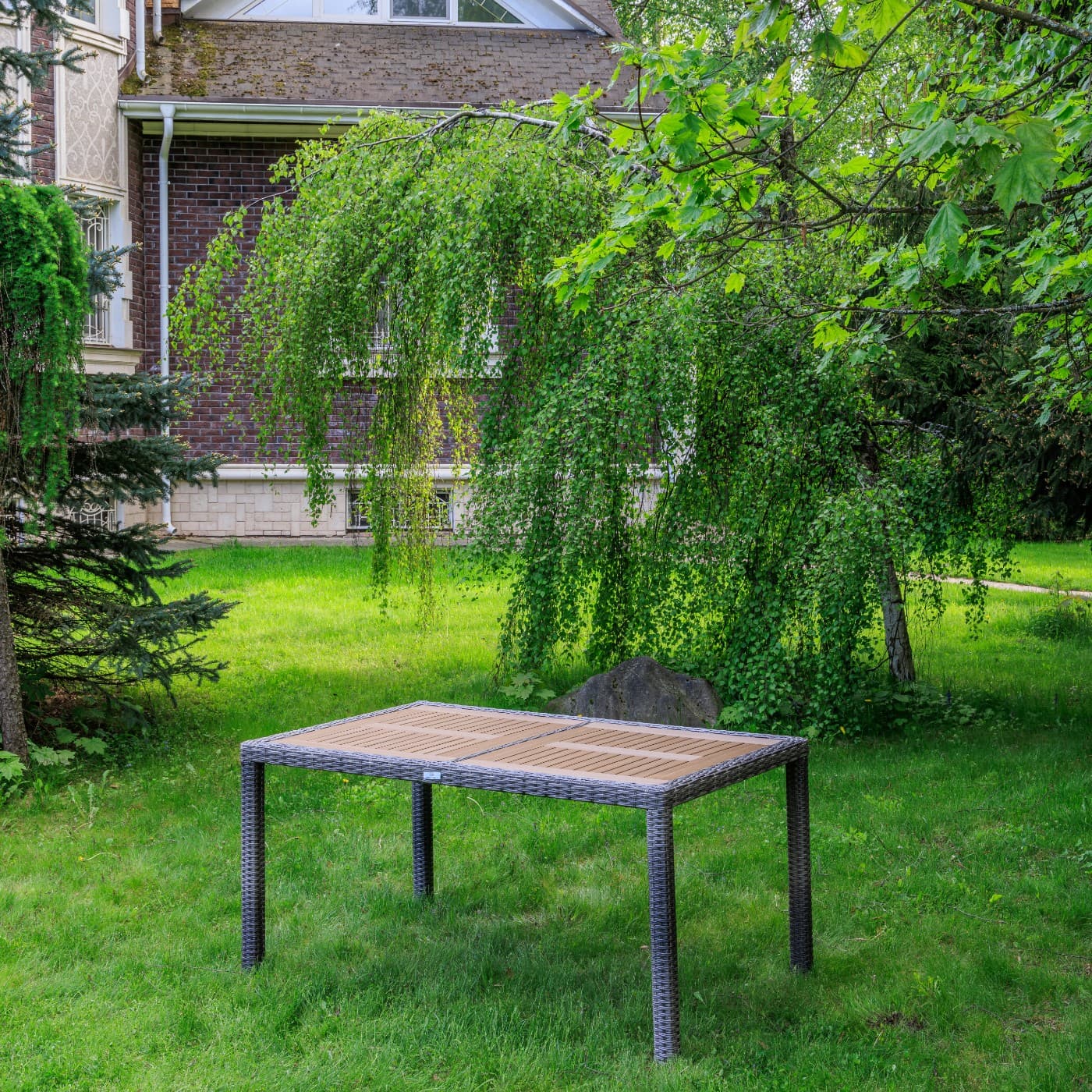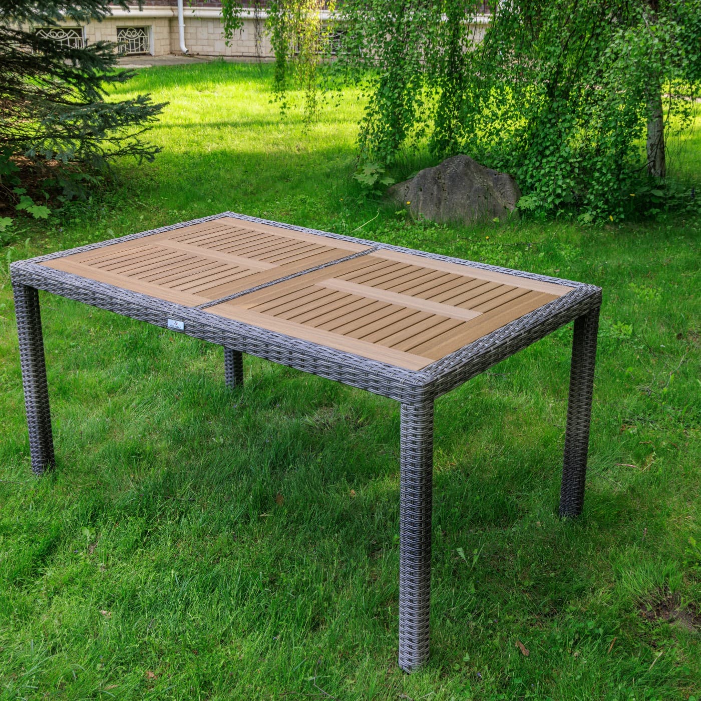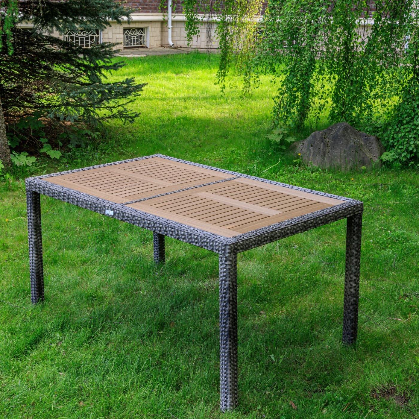 Материал стола — искусственный ротанг (ручного плетения)