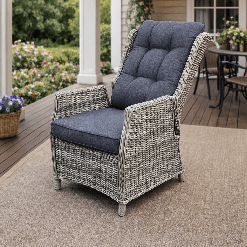 Плавный механизм позволяет менять наклон спинки с лёгкостью движения руки. Хотите сесть прямо за утренним кофе — пожалуйста. Решили вздремнуть в тени сада — откиньтесь назад. Кресло подстраивается под вас, а не вы под него.