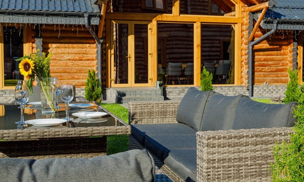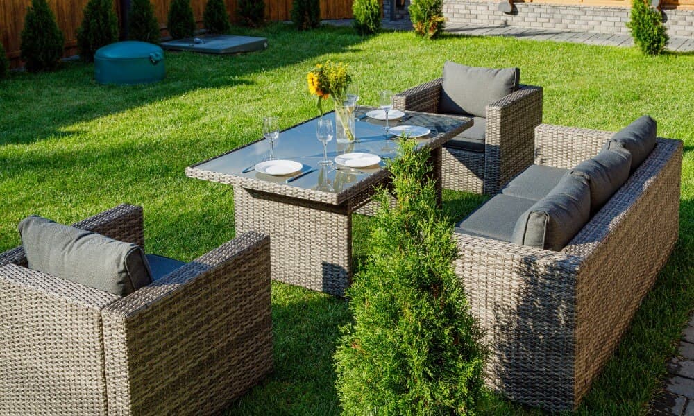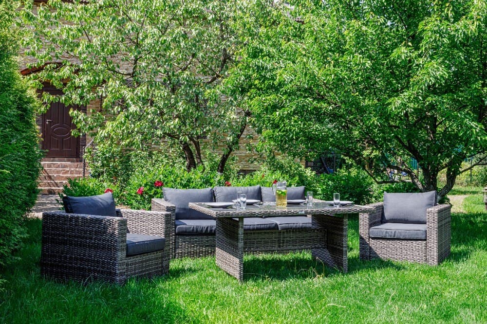 Все элементы мебели изготовлены из качественных материалов: металлокаркас и искусственный ротанг. Ротанг — это прочный и легкий материал, который не требует особого ухода и отлично переносит воздействие внешней среды. Металлокаркас обеспечивает прочность и стабильность всего конструкта.