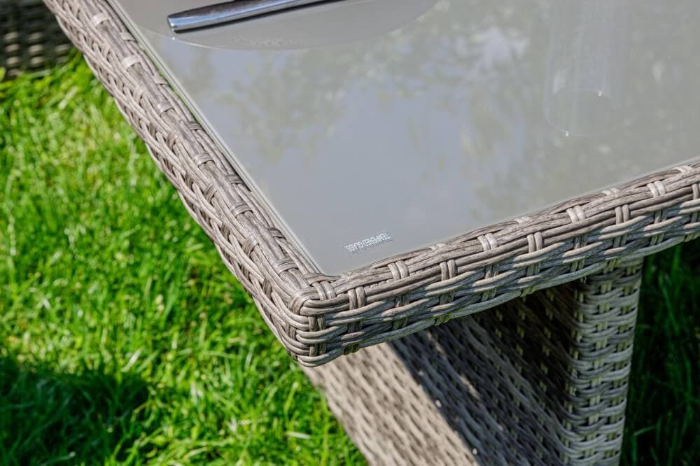 Комплект мебели Pion с обеденным столом в сером цвете — это элегантное и удобное решение для вашей столовой или гостиной. Он состоит из трехместного дивана, двух кресел и обеденного стола, изготовленных из искусственного ротанга на металлическом каркасе.