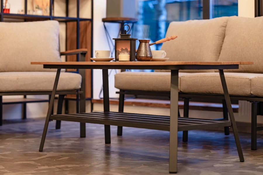 Журнальный столик со столешницей из тика имеет простой и современный дизайн, который позволяет легко сочетаться с любым интерьером. Столик может использоваться как для хранения напитков и закусок, так и для размещения книг и журналов.