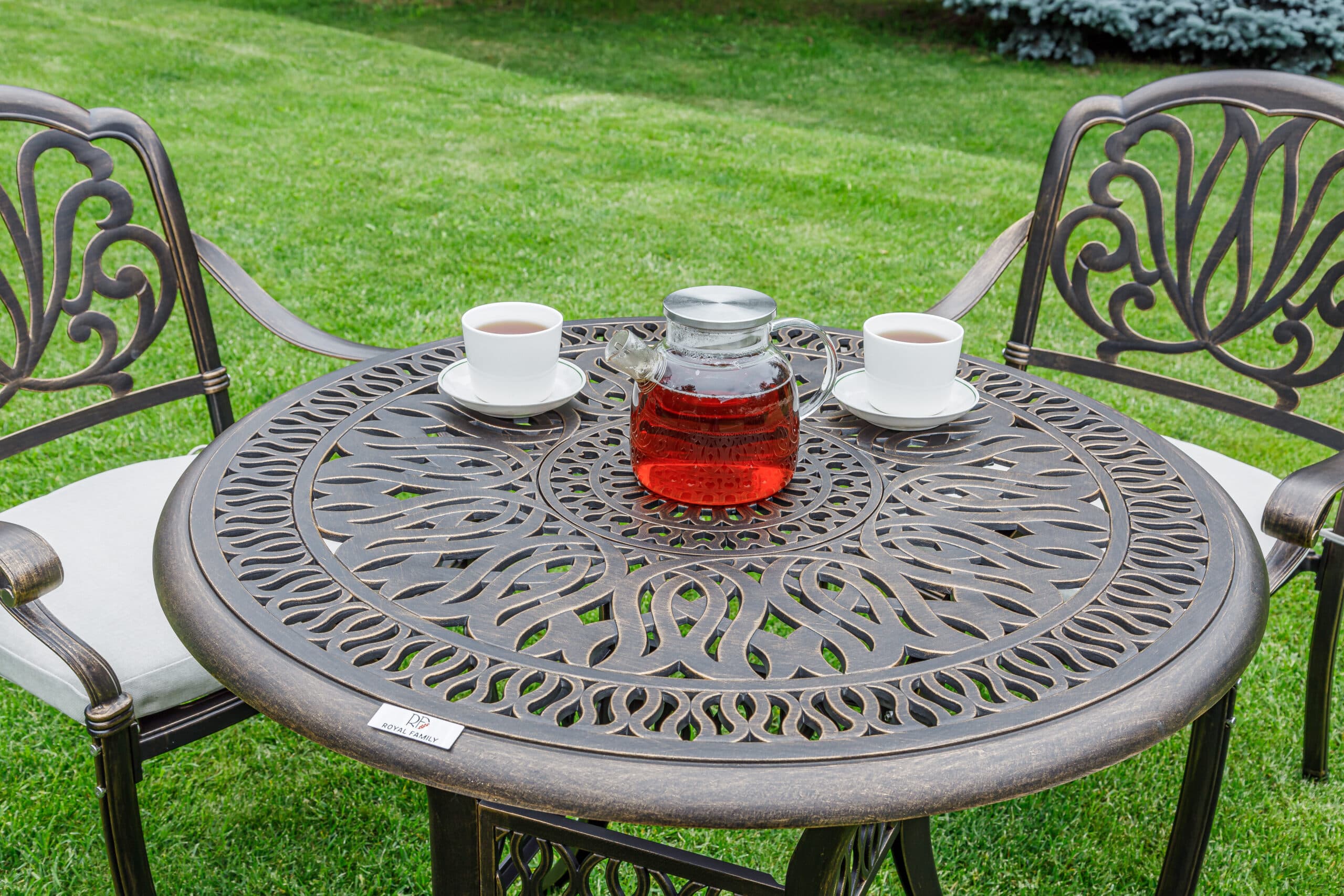 Эргономичный дизайн кресел обеспечивает комфортное сидение, а стильное исполнение придаст вашему саду или террасе особый шарм. Круглый стол с элегантным дизайном и прочной столешницей идеально дополнит общий вид комплекта.