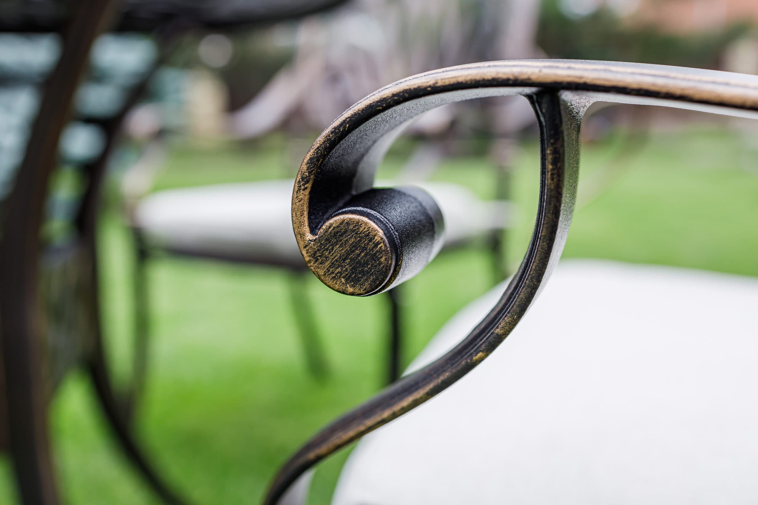 Кресла изготовлены из прочного литого алюминия, который обеспечивает надежность и долговечность конструкции. Этот материал не подвержен коррозии и легко чистится, что делает уход за мебелью максимально простым.